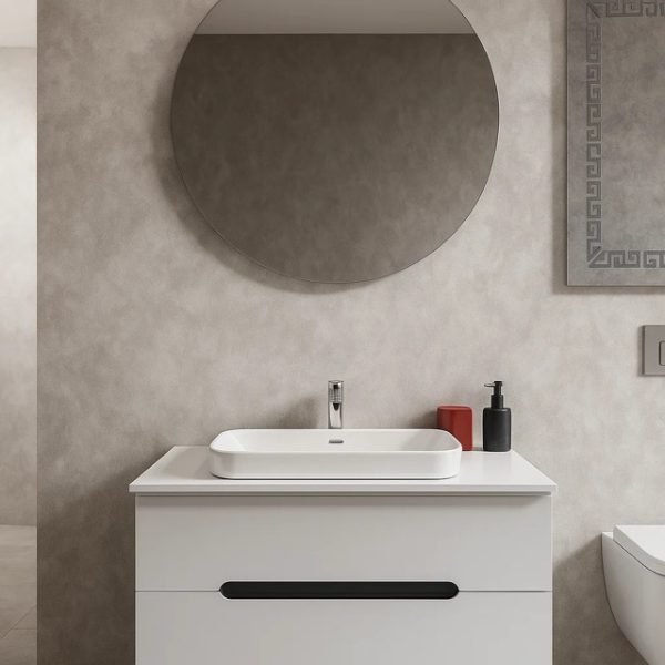 Me gjerësi prej 80 cm, ky set është zgjidhje perfekte për ambiente të vogla dhe të mesme të banjos.