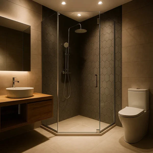 Dimensionet 90×90 cm e bëjnë ideal për montim në kënd, duke kursyer hapësirë dhe duke ofruar komoditet maksimal gjatë përdorimit.