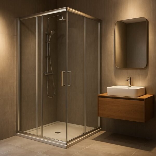 Kabina ka hapje shiber dhe kornizë silver, që i shton elegancë dhe stil modern çdo banjoje.