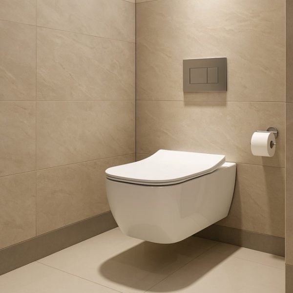 Ngjyra e bardhë dhe materiali antibakterial e bëjnë këtë WC të përshtatshëm për banjo moderne në Kosovë, përfshirë Prishtinë, Ferizaj, Gjilan, Pejë dhe Prizren.