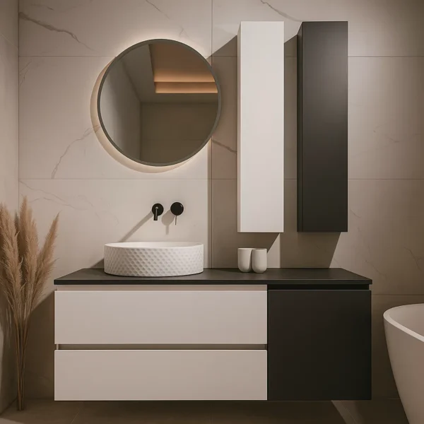 BLACK WHITE 121 DOLLAP – Set Banjo 100 cm me MDF Premium, Pasqyrë LED & Dy Ansore