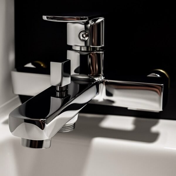Bateria ka ngjyrë chrome, e cila i jep banjës një pamje elegante dhe moderne.