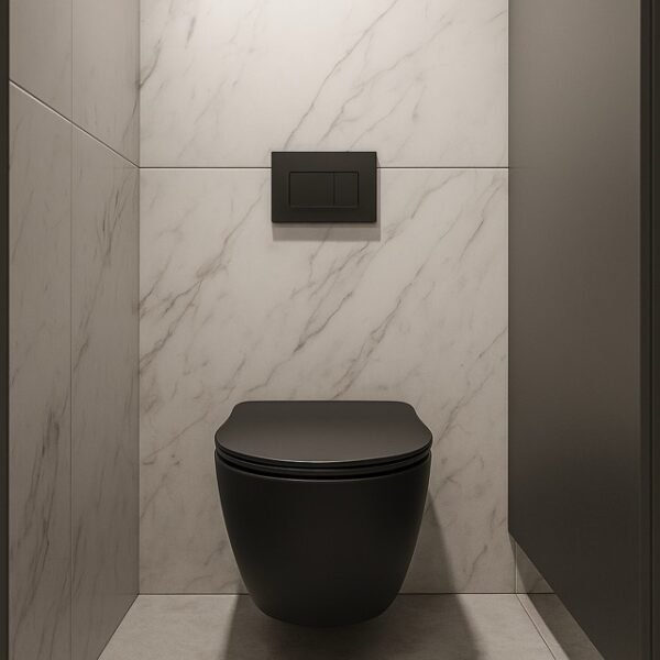 Ngjyra antracit dhe materiali antibakterial e bëjnë këtë WC të përshtatshëm për banjo moderne në Kosovë, duke përfshirë Prishtinë, Ferizaj, Gjilan, Pejë dhe Prizren.