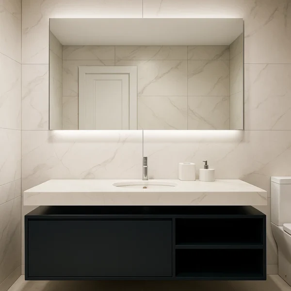 Sipërmesa prej pllake porcelani/keramike siguron estetikë të pastër dhe jetëgjatësi,