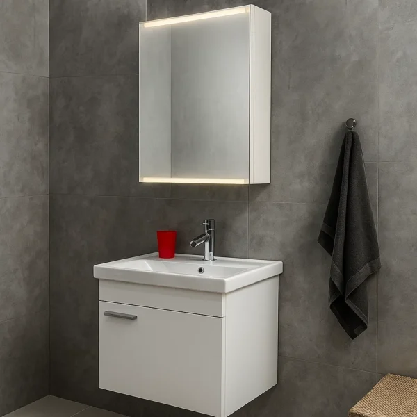 Pasqyra me dollap të integruar është ideale për organizim të produkteve të përditshme,