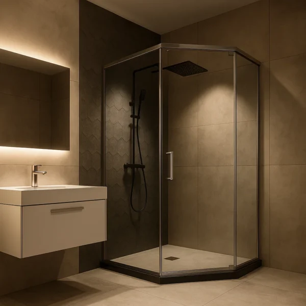 Dimensionet 90×90 cm dhe 100×100 cm e bëjnë të përshtatshme për montim në kënd, duke kursyer hapësirë dhe duke ofruar komoditet maksimal gjatë përdorimit.