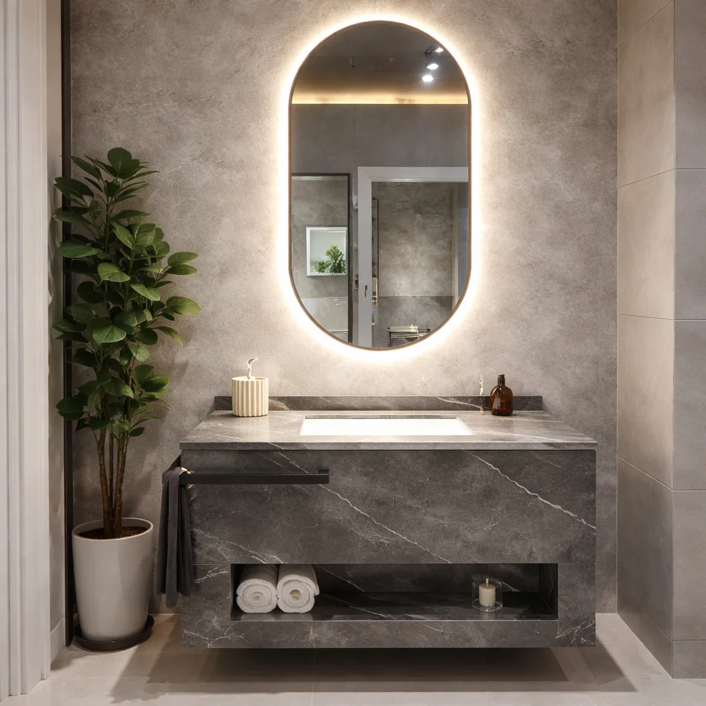 ML-093 DOLLAP – Dollap 80cm me Lavaman, Pasqyrë Ovale LED dhe Mbajtës Peshqiri