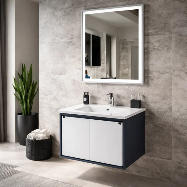 ML-083 DOLLAP – Dollap 60cm me Material PVC, Lavaman dhe Pasqyrë LED