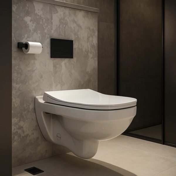 Ngjyra e bardhë dhe materiali antibakterial e bëjnë këtë WC të përshtatshëm për banjo moderne në Kosovë, duke përfshirë qytetet kryesore si Prishtinë, Ferizaj, Gjilan, Pejë dhe Prizren.
